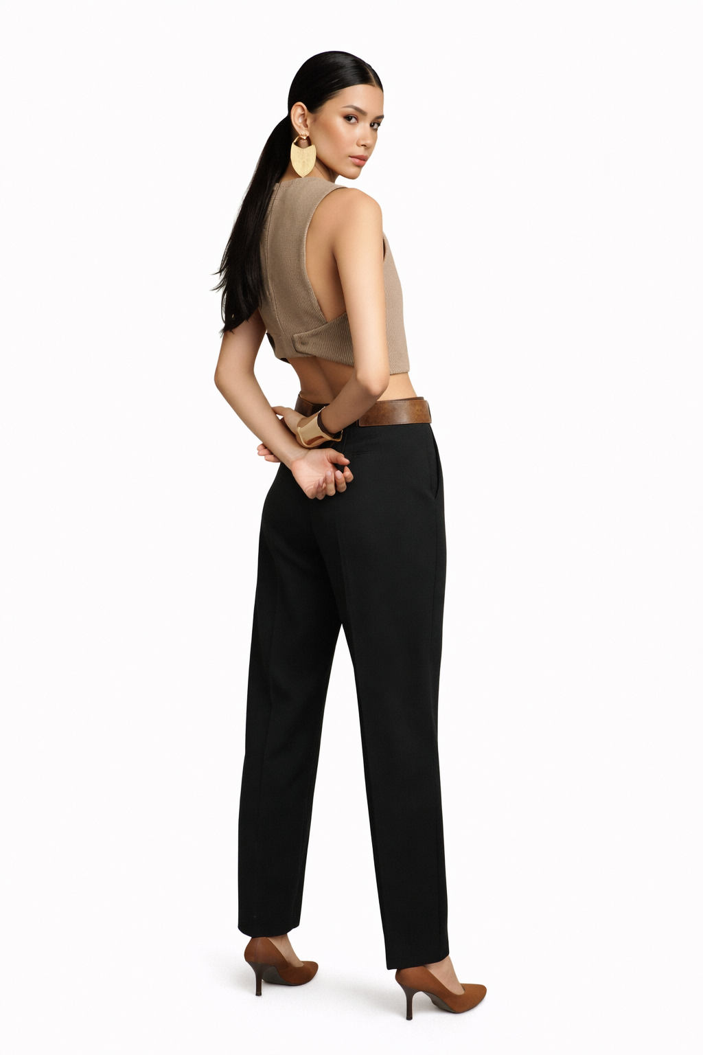 TOP COLOR KAKI ESCOTE EN LA ESPALDA CON BROCHES LATERALES