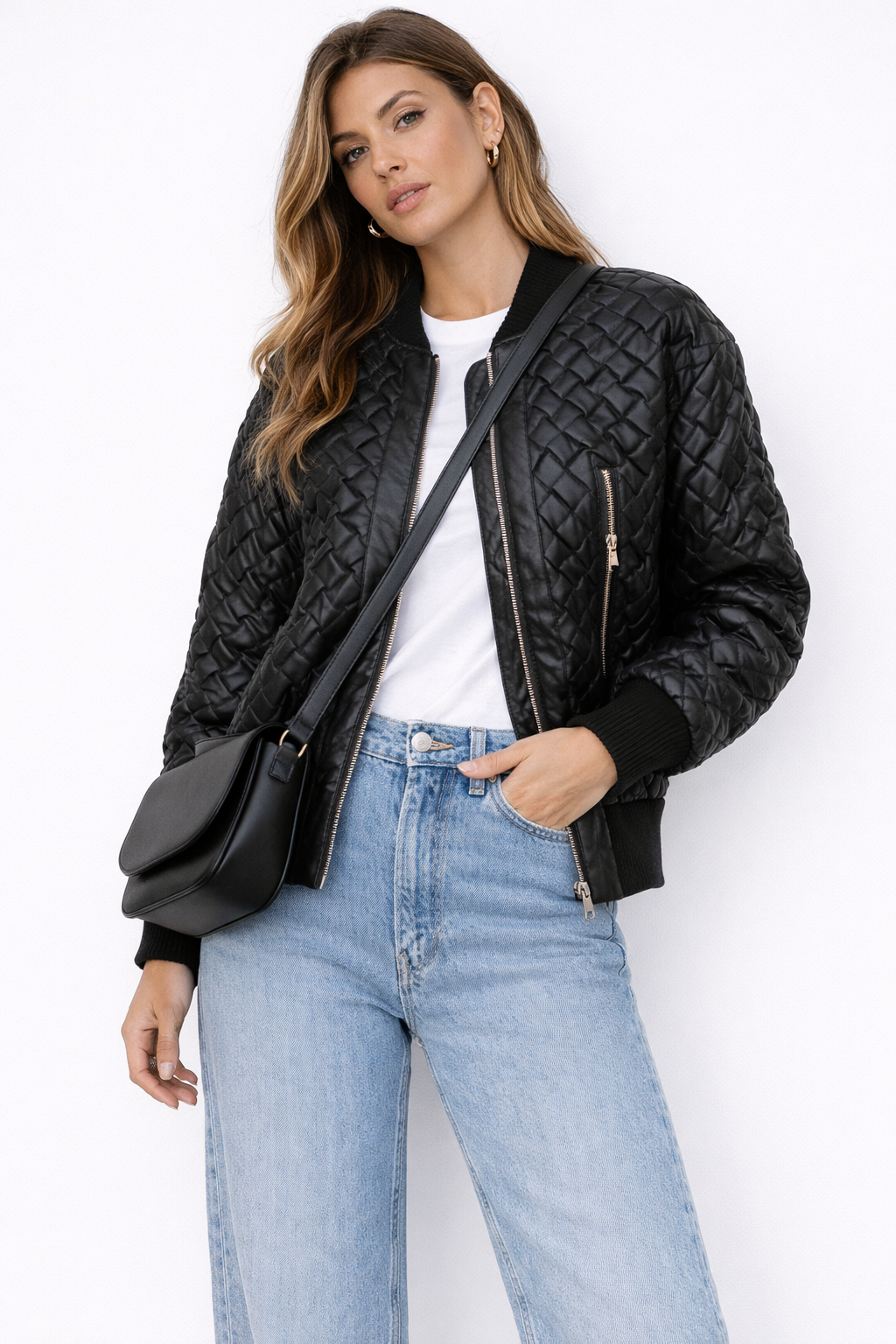 Chamarra de cuero trenzada. Color rojo y negro