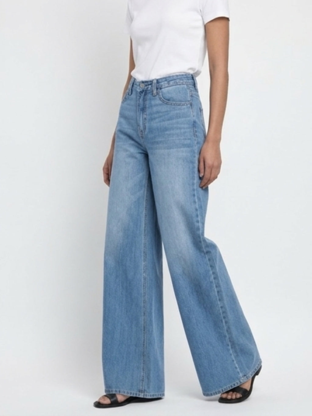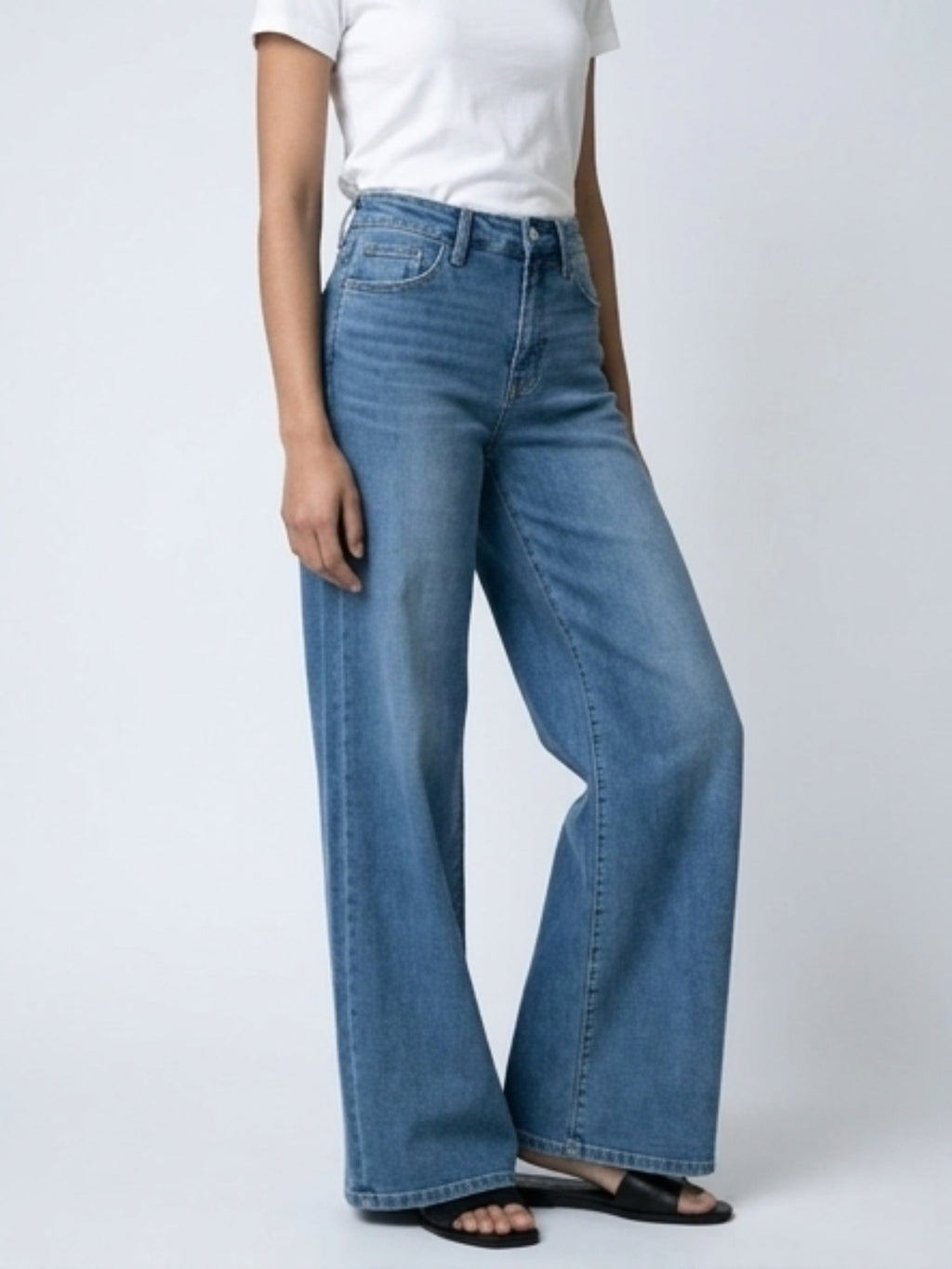 Jeasn super anchos rectos con corte pegadito y suelto abajo largos