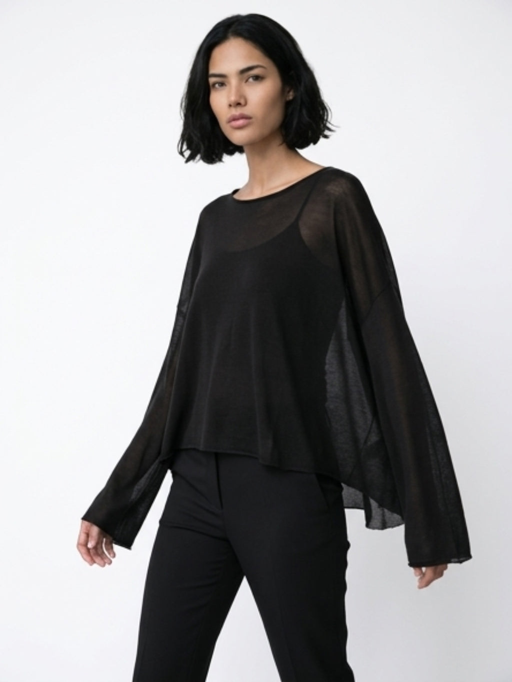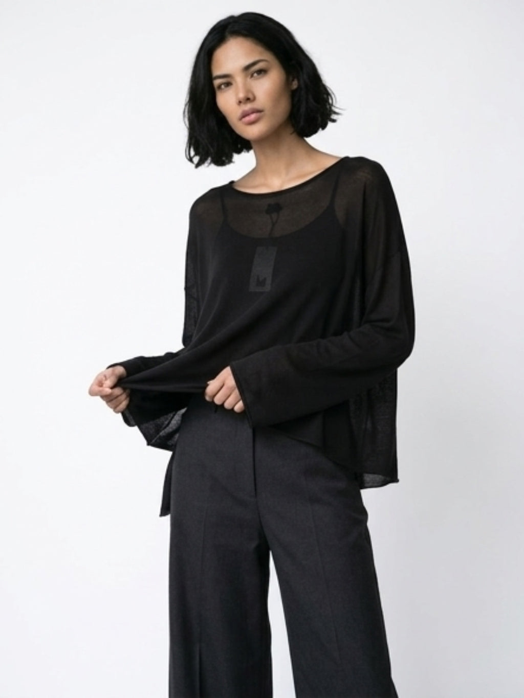 sueter calado tranparanete over negro tejido